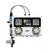 Dávkovací a řídící automat se sondami CLF a pH a s modulem pro řízení pumpy s variabilním výkonem. Regulace volného chloru a pH. Dávkování algicidu a flokulantu.