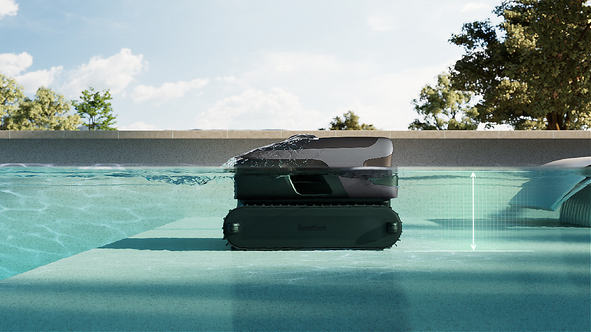 Robot zajišťuje plné pokrytí bazénu – dno, stěny, vodní linku i hladinu. Díky adaptivnímu systému dokáže čistit i schody a plošiny od hloubky 20 cm, což běžné roboty často nezvládají.