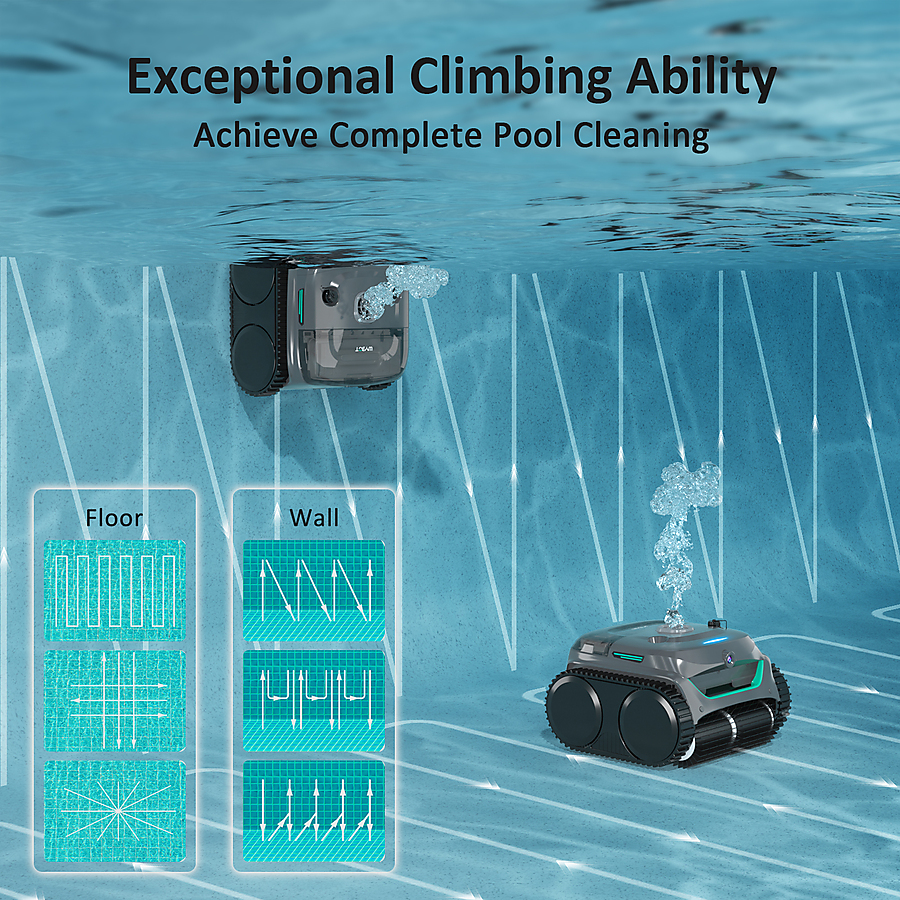 Vysavač využívá optimalizované trasy pohybu, které minimalizují překryvy a zajišťují maximální pokrytí bazénu. Díky tomu čistí rychleji a efektivněji.
