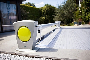 Elektrická varianta řízená dálkovým ovládáním Wi-key nebo aplikací LivePool přímo z Vašeho mobilu nebo solární varianta s klíčovým spínačem umístěným ve stojně rolety.