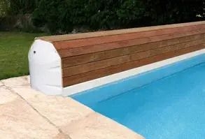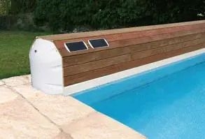 Roleta s kvalitním překrytím z bílého PVC nebo z pevného, elegantního IPE dřeva (65% dřeva a 35% pryskyřice). Překrytí chrání roletu před znečištěním a atmosférickými vlivy. Překrytí rolety nemůže sloužit jako lavice a není určeno k sezení! Technicky není možné dostatečně zpevnit část překrytí nad hladinou vody.