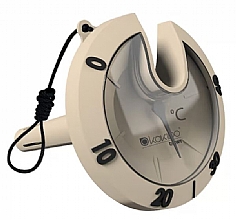 Plovoucí teploměr k měření teploty bazénové vody, doplněn provázkem k upevnění např. ke schůdkům.