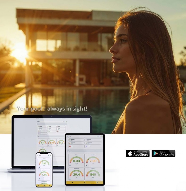 S Yellow Pool Control ovládáte celý bazén pouhými několika dotyky prstu. Inovativní design zařízení nejenže vypadá elegantně, ale také zobrazuje důležité stavové signály prostřednictvím integrovaného Signature Light (Ambi-Light). Moderní vzdálený přístup přes aplikaci, zajišťují maximální pohodlí při ovládání – i na cestách.