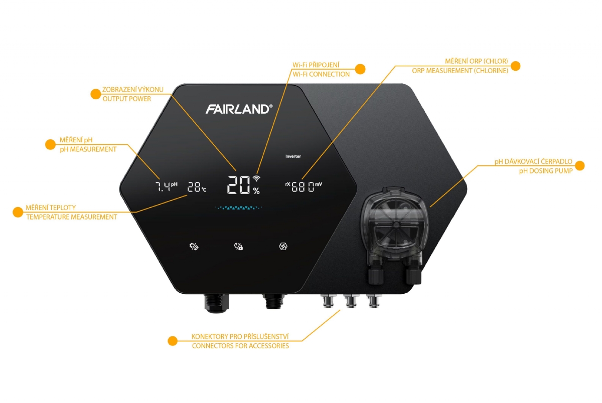 - Automatická regulace pH a dávkování kyseliny