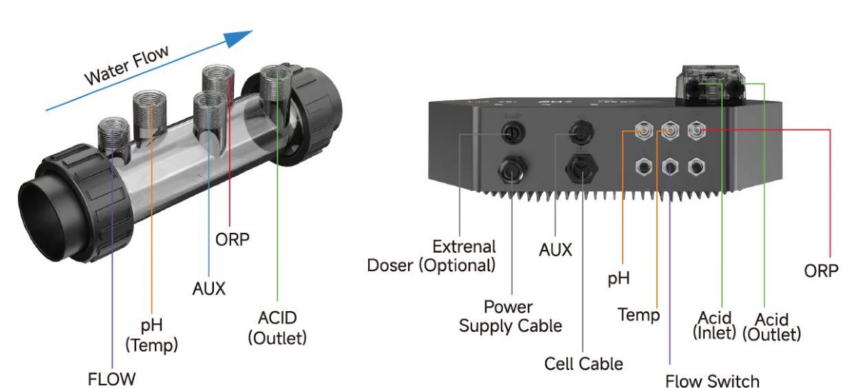Vestavěné senzory pH, teploty a průtoku (volitelně ORP) umožňují inteligentní automatickou úpravu vody a udržení optimální úrovně dezinfekce bez nutnosti neustálého zásahu. Integrované dávkovací čerpadlo a možnost připojení k mobilní aplikaci dělají z iSALT moderní, plně automatizované řešení.