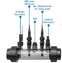 - Vestavěné senzory pH, teploty a průtoku, volitelně ORP
