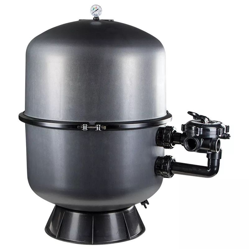 Dvoudílná filtrační nádoba z polypropylenu vyztuženého skelným vláknem (PP). Velmi robustní a odolná vůči UV záření. Polypropylen je odolný téměř vůči všem chemikáliím používaným v bazénech (kromě ozonu). Obě poloviny filtrační nádoby jsou pevně utěsněny nerezovou svorkou. Díky rozdělenému designu a snadnému otevření filtrační nádoby je výměna písku velmi snadná.