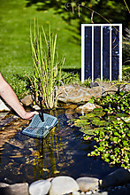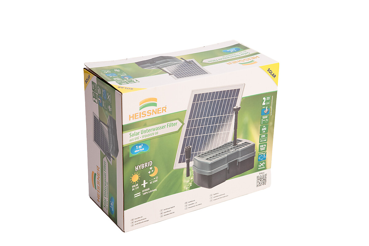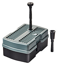 Je určeno pro jezírka do 1000 l. Podvodní filtrace s čerpadlem a integrovanou UV lampou 5 W pro ti řasám. Na těle filtrace je průzor pro kontrolu UV lampy. Celoplošný filtrační povrch s mechanickou filtrací zaručuje prodloužení intervalu mezi nutnou údržbou. Žádná část filtrace prakticky není vidět díky umístění na dně jezírka. Sada čerpadla s filtrem obsahuje teleskopickou trubici a dvě trysky pro vodni efekty. Je osazena filtračními médii, filtračním molitanem pro hrubé nečistoty, bio domečky pro usídlování filtračních bakterií pro biologickou filtraci. Díky solárnímu panelu máte za slunných dní provoz zcela zdarma, ale je i možnost díky dodávanému trafu zapojit filtraci i do elektrické sítě.