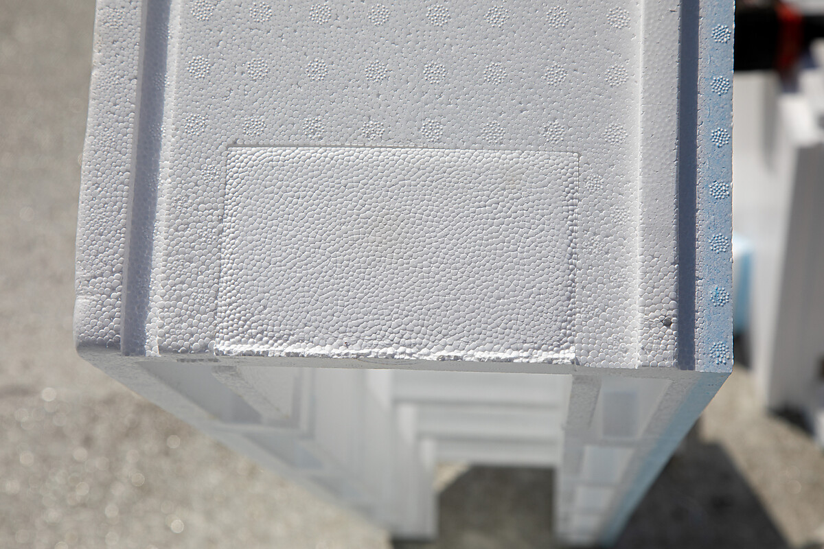 Do každého rohu je potřeba jedna horní a jedna spodní koncovka na každé patro tvárnic. Pro bazén o hloubce 1,5 m je potřeba 16 koncovek.