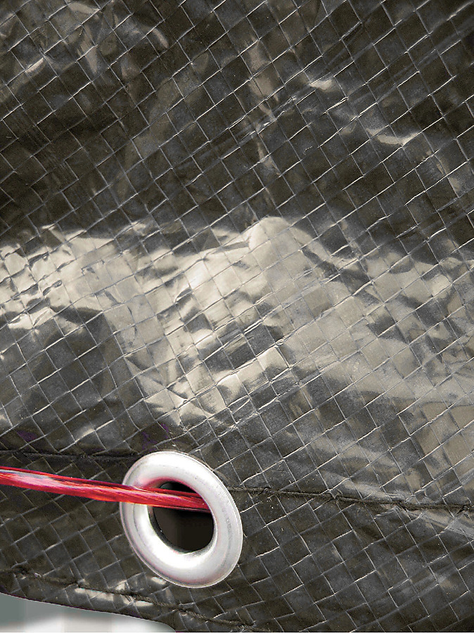 - Obsah balení: plachta s hliníkovými oky, kovové lanko, napínák s ráčnou.