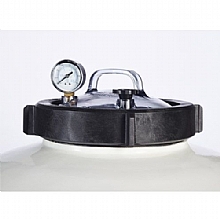 - Velké průhledné víko s odvzdušňovacím ventilem a manometrem, upevněné snadno šroubovatelným kroužkem, vyztužené skleněnými vlákny pro maximální pevnost a odolnost.