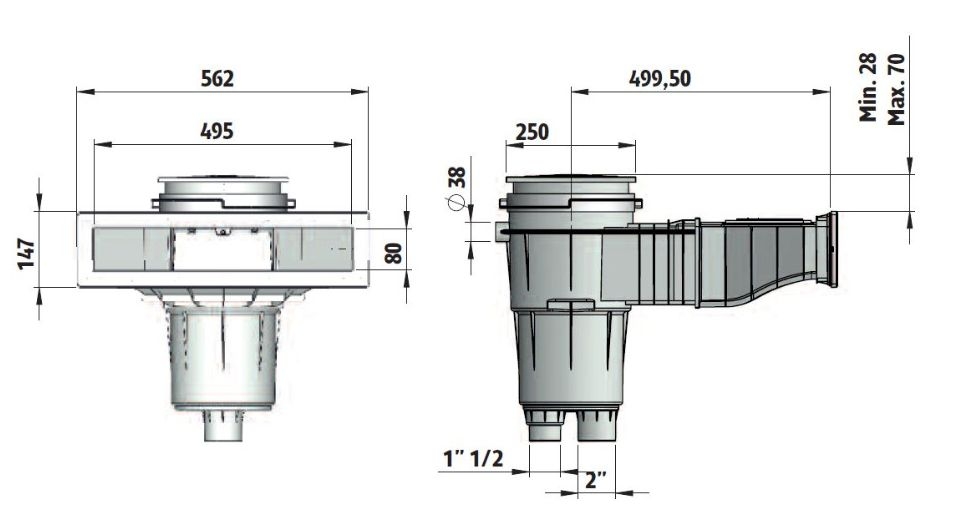 Skimmer SLIM se čtvercovým víkem, 17,5 l, otvor 495 x 80 mm