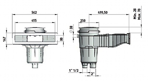 Skimmer SLIM se čtvercovým víkem, 17,5 l, otvor 495 x 80 mm