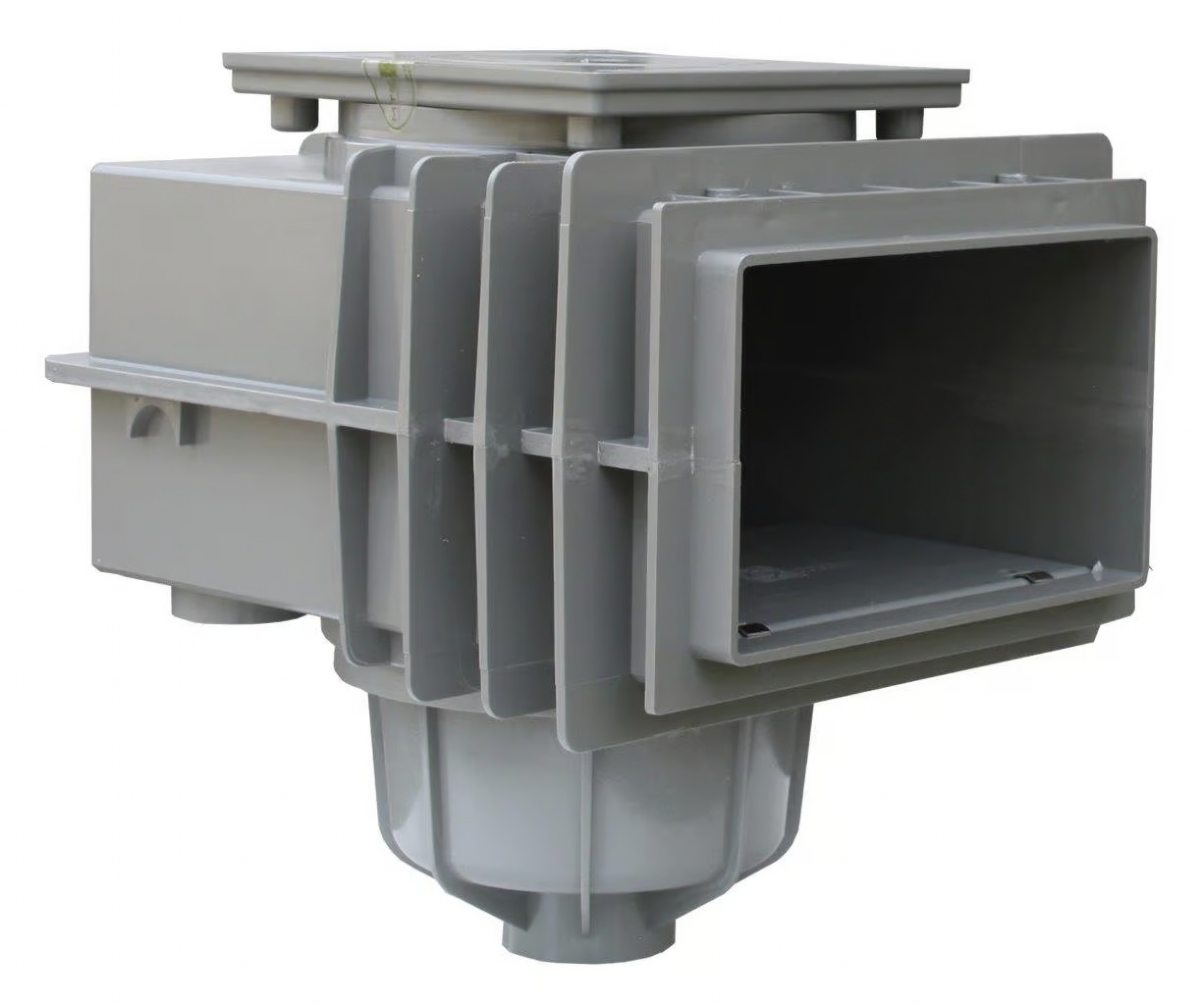 Skimmer V20 - Šedý pro instalaci do betonu.Možnost prodloužení hrdla o 5cm horizontálním prodloužením - obj.kód: 112005Skimmer (hladinový sběrač nečistot) slouží k odvodu znečištěné bazénové vody do filtrace.Materiál ABS: nepodléhá změnám v důsledku vystavení chemickým ani atmosférickým vlivům.Barva: Šedá