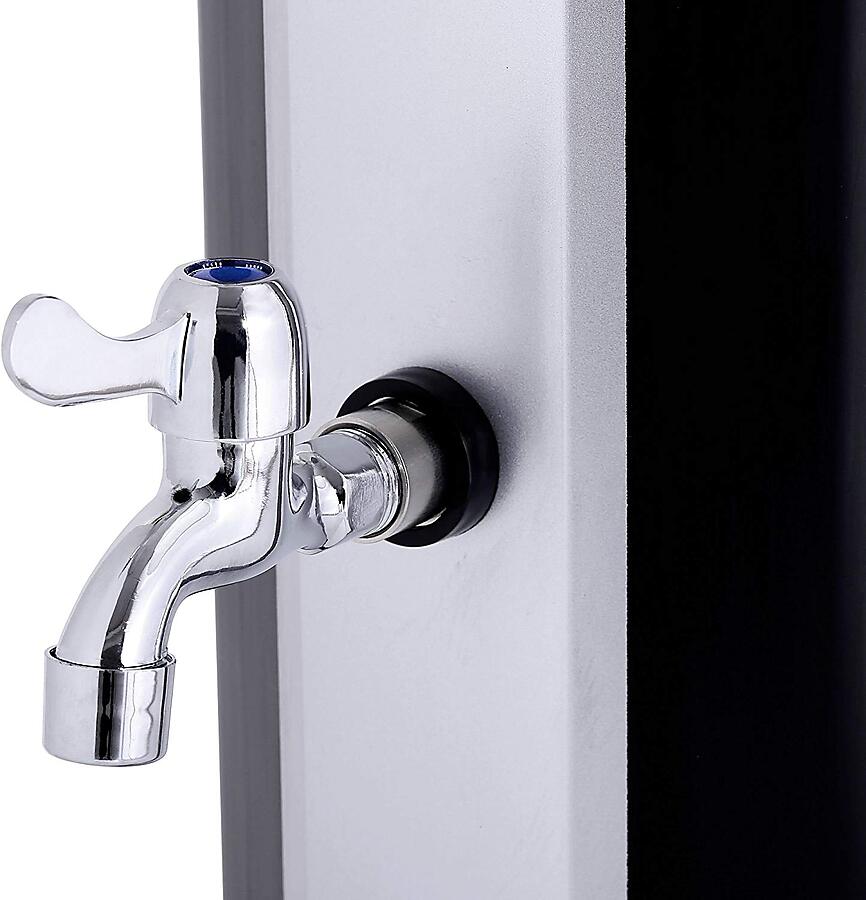 Solární sprcha NEOVA Capri 35L v černo-stříbrném provedení je perfektním doplňkem každé zahrady, terasy nebo okolí bazénu. Díky svému modernímu designu a ekologickému fungování bez potřeby elektřiny nabízí komfortní osvěžení a šetří náklady na energii. Tato sprcha využívá solární energii k ohřevu vody až na 60°C, což je ideální pro letní dny, kdy chcete mít k dispozici teplou vodu bez jakéhokoli zásahu do elektrické sítě.