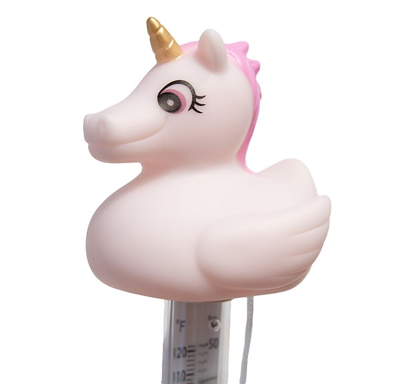 Plovoucí teploměr s roztomilým motivem jednorožce, který přesně měří teplotu vody ve vašem bazénu. Díky připevněnému provázku ho snadno přivážete třeba ke schůdkům, takže je vždy po ruce. Skvělá kombinace funkčnosti a zábavy pro vaše letní radovánky.