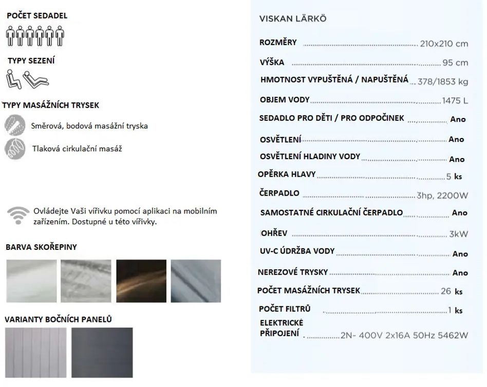 Lärkö je vířivka, která disponuje směrovatelnými masážními tryskami, tyto trysky Vám zajistí nejen plno příjemné zábavy ale i regenerační masáž.