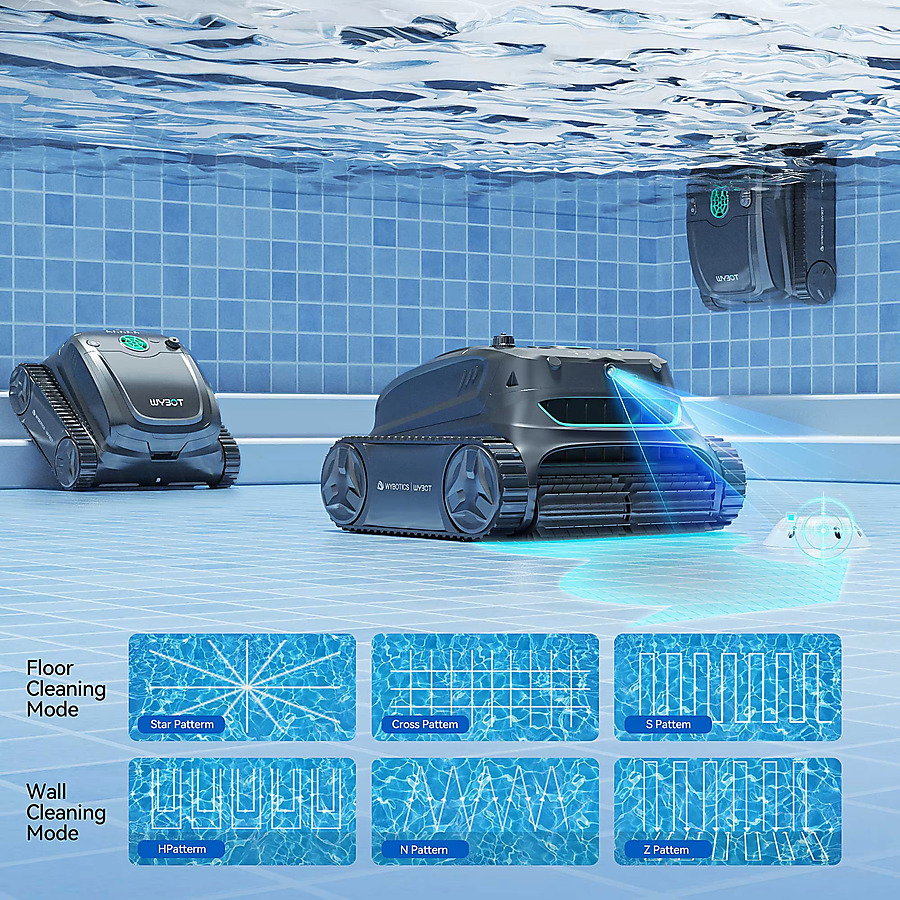 WYBOT S2 Vision je moderní bezdrátový bazénový robot, který využívá AI kameru k přesnému rozpoznání nečistot i překážek. Místo náhodného pohybu pracuje cíleně – aktivně vyhledává znečištěná místa a čistí je s vysokou přesností. Díky tomu dokáže zanechat bazén rovnoměrně čistý bez vynechaných oblastí.