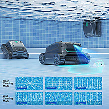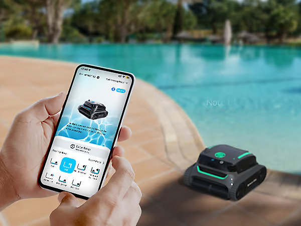 Výkonná baterie 7800 mAh umožňuje provoz až 210 minut v Eco režimu, takže zvládne i větší bazény do cca 300 m2. K dispozici je 8 režimů čištění, včetně samostatného čištění dna, stěn, vodní linky nebo inteligentního režimu „Dirt Hunting“, který využívá AI kameru k cílenému úklidu.